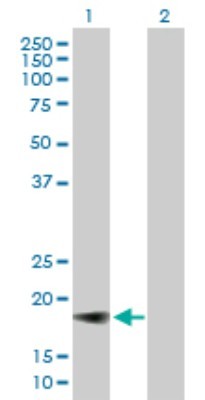 - Western Blot: IFN-alpha G/IFNA5 Antibody [H00003442-B01P] - Analysis of IFNA5 expression in transfected 293T cell line by IFNA5 polyclonal antibody. Lane1:IFNA5 transfected lysate(20.79 KDa). Lane2:Non-transfected lysate.
