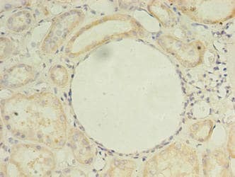 - Immunocytochemical analysis of paraffin-embeded ZDHHC4 in human kidney tissue using a ZDHHC4 Polyclonal antibody (Product # PA5-113390) at a dilution of 1:100.