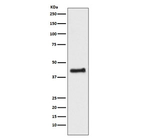 - Western blot testing of human HEK293 cell lysate with NR2F1 antibody. Predicted molecular weight ~46 kDa.