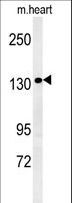 - ANKRD32 Antibody western blot of mouse heart tissue lysates (35 ug/lane). The ANKRD32 antibody detected ANKRD32 protein (arrow).