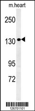 - ANKRD32 Antibody (N-term) western blot analysis in mouse heart tissue lysates (35ug/lane).This demonstrates the ANKRD32 antibody detected ANKRD32 protein (arrow).