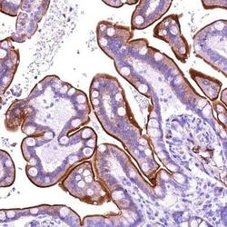 - Immunohistochemistry-Paraffin: ANKRD32 Antibody [NBP1-88358] - Staining of human colon shows strong membranous positivity in glandular cells.