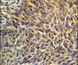 - Immunohistochemistry analysis in formalin-fixed, paraffin-embedded human cervix carcinoma using an ANKRD32 polyclonal antibody (Product # PA5-25322), followed by HRP-conjugated secondary antibody and DAB staining.