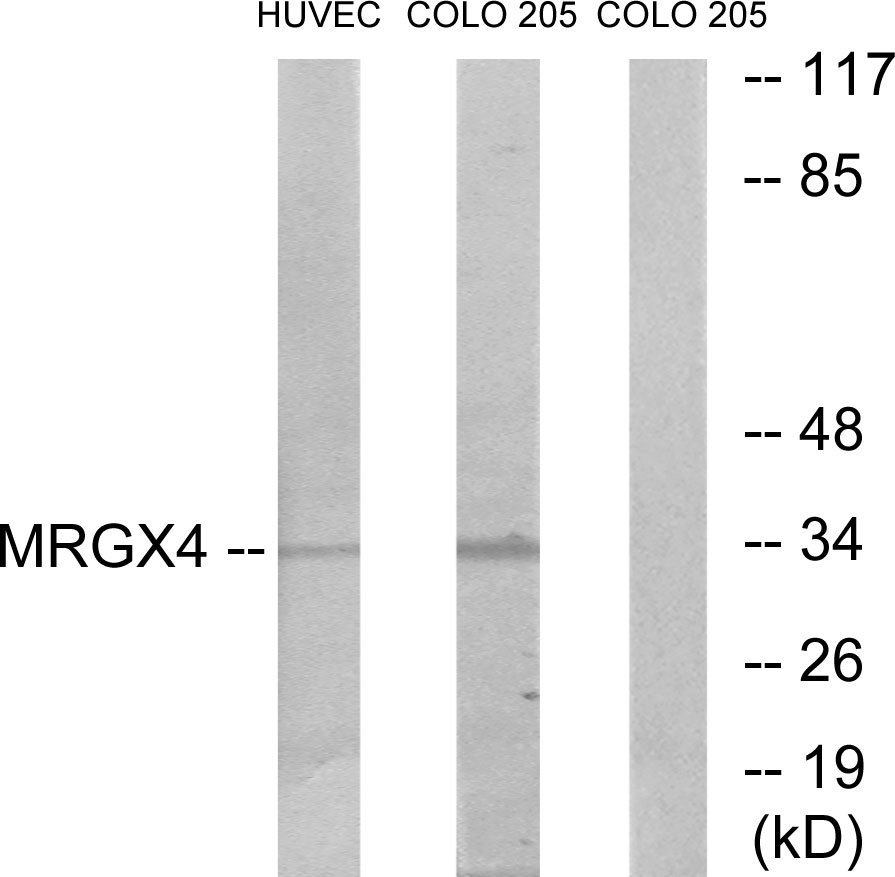 - The antiserum was produced against synthesized peptide derived from C-terminal of human MRGX4.