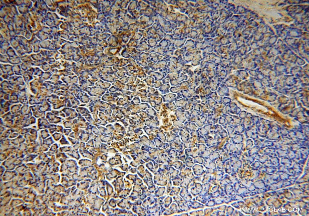 - Immunohistochemistry of paraffin-embedded human pancreas using 13318-1-AP (CISD2 antibody) at dilution of 1:50 (under 10x lens).