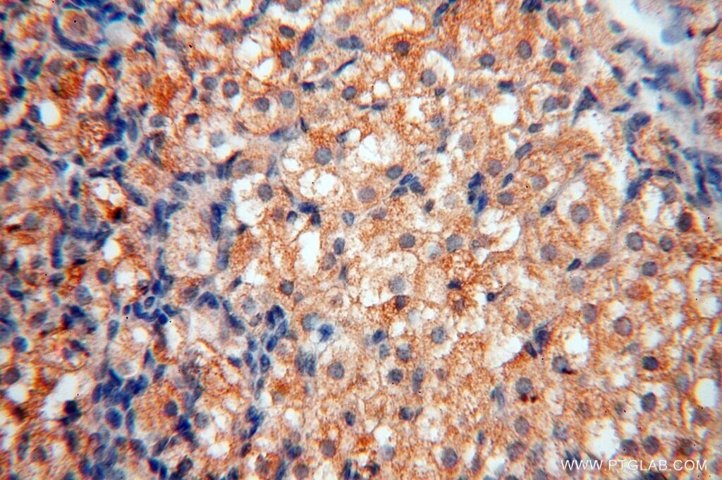 - Immunohistochemistry of paraffin-embedded human kidney using 13318-1-AP (CISD2 antibody) at dilution of 1:100 (under 10x lens).
