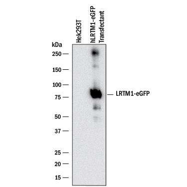 - Detection of LRTM1 in HEK293 Human Cell Line Transfected with Human LRTM1 and eGFP by Flow Cytometry. Detection of LRTM1 in HEK293 Human Cell Line Transfected with Human LRTM1 and eGFP by Flow Cytometry.