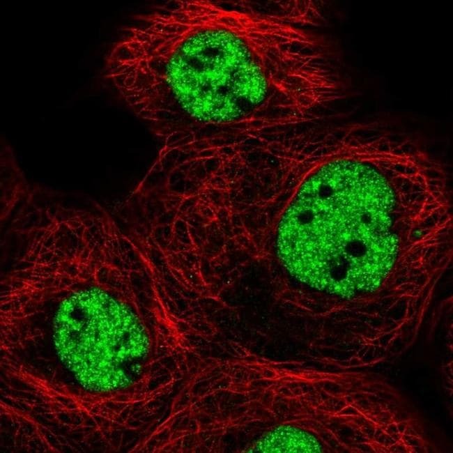 - Immunofluorescent staining of MED6 in human cell line A-431 using a MED6 Polyclonal Antibody (Product # PA5-64391) shows localization to nucleoplasm.
