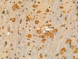 - Immunohistochemistry analysis of ENDOGL1 in rat brain tissue. The sample was formaldehyde fixed and a heat mediated antigen retrieval step in citrate buffer was performed. Samples were incubated with ENDOGL1 polyclonal antibody (Product # PA5-101578) using a dilution of 1:100 (4°C overnight) followed by HRP conjugated anti-Rabbit secondary antibody.