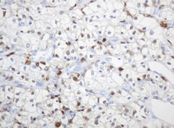 - IHC of paraffin-embedded Carcinoma of Human kidney tissue using anti-TYMP mouse monoclonal antibody. (Heat-induced epitope retrieval by 10mM citric buffer, pH6.0, 120°C for 3min).