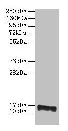 - Western blot All lane: Cytidine deaminase antibody at 2µg/ml + EC109 whole cell lysate Secondary Goat polyclonal to rabbit IgG at 1/15000 dilution Predicted band size: 14.5 kDa Observed band size: 14.5 kDa