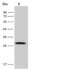 - Western Blot analysis of C13orf27 using C13orf27 Polyclonal Antibody (Product # PA5-112282) at a dilution of 1:500. Lane A: U-251 MG whole cell lysate, (Lysates/proteins at 30 ?g per lane). The secondary antibody used was a Goat Anti-Rabbit IgG (H+L)/HRP at 1:10000 dilution. Developed using the ECL technique and performed under reducing conditions. Predicted band size: 25 kDa. Observed band size: 27 kDa.