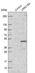 - Polyclonal Antibody against Human LRRC75A, Gene description: leucine rich repeat containing 75A, Alternative Gene Names: C17orf76, FAM211A, FLJ35696, Validated applications: WB, IHC, Uniprot ID: Q8NAA5, Storage: Store at +4°C for short term storage. Long time storage is recommended at -20°C.