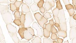 - Immunohistochemistry analysis of NT5M in paraffin-embedded Human Skeletal muscle tissue. Samples were incubated with polyclonal antibody (Product # PA5-118920) at a dilution of 20 µg/mL, followed by HRP-Linked Caprine Anti-Rabbit IgG using a dilution of 2 µg/mL.
