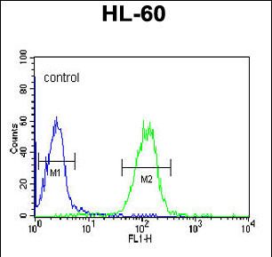 - APOL4 Antibody (Center E273) (GTX81722) flow cytometric analysis of HL-60 cells (right histogram) compared to a negative control cell (left histogram).FITC-conjμgated goat-anti-rabbit secondary antibodies were used for the analysis.