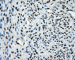 - Immunohistochemical staining of paraffin-embedded Carcinoma of bladder tissue using anti-LOX mouse monoclonal antibody. (Dilution 1:50).