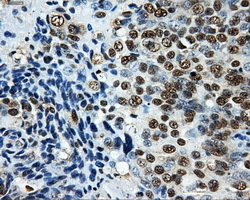 - Immunohistochemical staining of paraffin-embedded Carcinoma of prostate tissue using anti-LOX mouse monoclonal antibody. (Dilution 1:50).