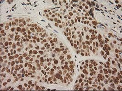 - IHC of paraffin-embedded Carcinoma of Human bladder tissue using anti-LOX mouse monoclonal antibody.