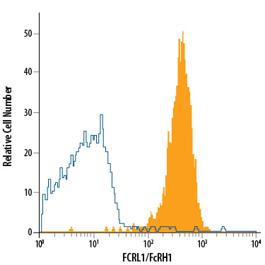 - Detection of FCRL1/FcRH1 in Human Blood B cells by Flow Cytometry. Human blood B cells were stained with Mouse Anti-Human FCRL1/FcRH1 PE-conjugated Monoclonal Antibody (Catalog # FAB2049P, filled histogram) or isotype control antibody (Catalog # IC002P, open histogram). View our protocol for Staining Membrane-associated Proteins.