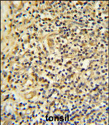 - FKBP11 Antibody (C-term) (GTX81718) IHC analysis in formalin fixed and paraffin embedded human tonsil tissue followed by peroxidase conjμgation of the secondary antibody and DAB staining. This data demonstrates the use of the FKBP11 Antibody (C-term) for immunohistochemistry. Clinical relevance has not been evaluated.