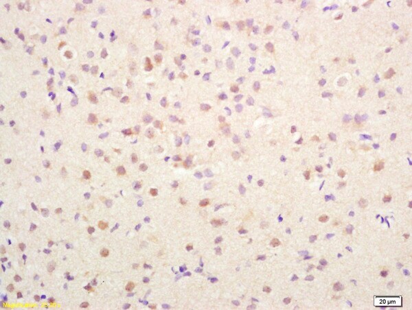 - Formalin-fixed and paraffin embedded rat brain labeled with Rabbit Anti AMPK gamma 1/2/3 Polyclonal Antibody, Unconjugated (bs-9446R) at 1:200 followed by conjugation to the secondary antibody and DAB staining.