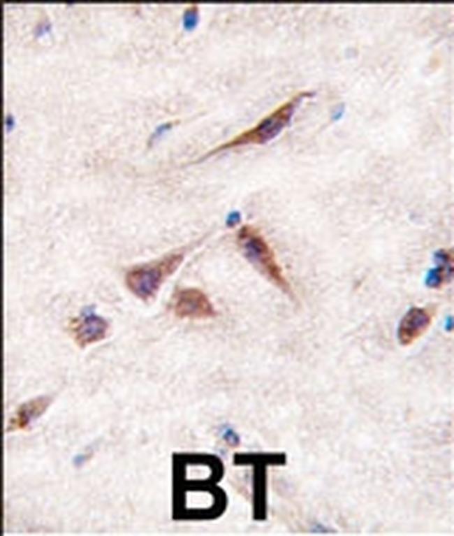 - Immunohistochemical analysis of ERAS in paraffin-embedded human brain tissue. Samples were incubated with ERAS polyclonal antibody (Product # PA5-71907) followed by a peroxidase-conjugate secondary antibody and DAB staining.