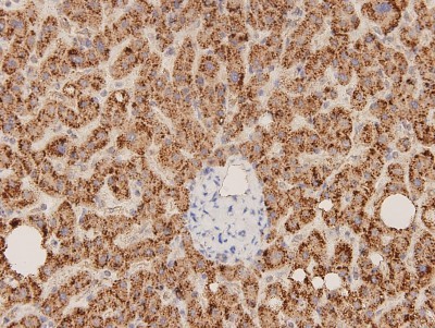 - Immunohistochemistry-Paraffin: ERAS Antibody (D10-B9) [NBP2-66822] - Analysis of paraffin-embedded human liver carcinoma tissue using anti- ERAS Mouse mAb.