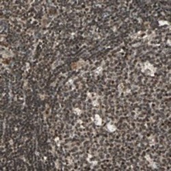 - Immunohistochemical staining of human lymph node with SCAND3 polyclonal antibody (Cat # PAB20368) shows strong nuclear and cytoplasmic positivity in reaction center cells and lymphoid cells outside reaction center at 1:50-1:200 dilution.