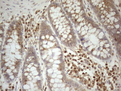 - Immunohistochemical staining of paraffin-embedded Human colon tissue using anti-ZNF69 mouse monoclonal antibody. (Heat-induced epitope retrieval by 1mM EDTA in 10mM Tris buffer (pH8.5) at 120°C for 3 min, TA808236)(1:150)