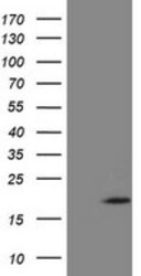 - HEK293T cells were transfected with the pCMV6-ENTRY control. (Left lane) or pCMV6-ENTRY ZNF69. (Right lane) cDNA for 48 hrs and lysed. Equivalent amounts of cell lysates. (5 ug per lane) were separated by SDS-PAGE and immunoblotted with anti-ZNF69. (1:2000)