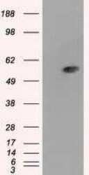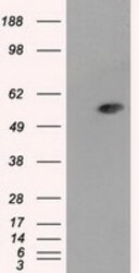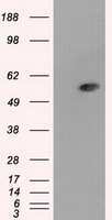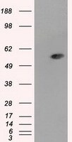 - HEK293T cells were transfected with the pCMV6-ENTRY control (Left lane) or pCMV6-ENTRY ALDH3A1 (RC202440, Right lane) cDNA for 48 hrs and lysed. Equivalent amounts of cell lysates (5 µg per lane) were separated by SDS-PAGE and immunoblotted with anti-ALDH. Positive lysates LY400232 (100 µg) and LC400232 (20 µg) can be purchased separately from OriGene.