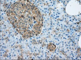 - Immunohistochemical staining of paraffin-embedded pancreas tissue within the normal limits using anti-ALDH3A1 mouse monoclonal antibody. (Heat-induced epitope retrieval by 10mM citric buffer, pH6.0, 100°C for 10min, TA501105, Dilution 1:50)