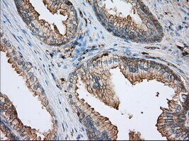 - Immunohistochemical staining of paraffin-embedded prostate tissue within the normal limits using anti-ALDH3A1 mouse monoclonal antibody. (Heat-induced epitope retrieval by 10mM citric buffer, pH6.0, 100°C for 10min, TA501105, Dilution 1:50)