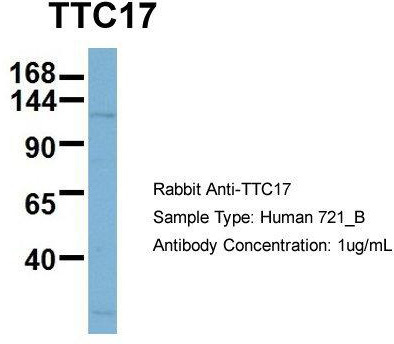 - Host:Rabbit; Target Name:TTC17; Sample Tissue:Human 721_B; Antibody Dilution: 1.0 ug/mlTTC17 is supported by BioGPS gene expression data to be expressed in 721_B