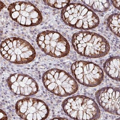 - Immunohistochemistry: ZNF791 Antibody [NBP2-13597] - Staining of human colon shows strong cytoplasmic positivity in glandular cells.