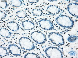 - Immunohistochemical staining of paraffin-embedded colon tissue using anti-STK3 mouse monoclonal antibody. (Dilution 1:50).