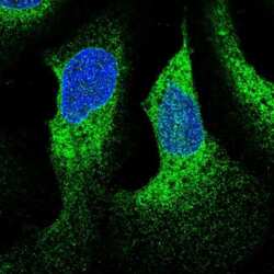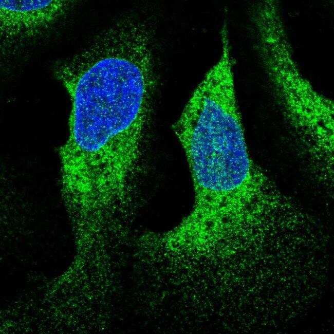 - Immunofluorescent staining of WDR83OS in human cell line U-2 OS shows localization to nuclear membrane and endoplasmic reticulum. Samples were probed using a WDR83OS Polyclonal Antibody (Product # PA5-66788).