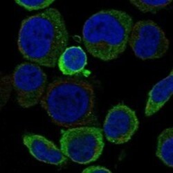 - Immunofluorescent staining of human cell line HEL shows localization to cytosol.