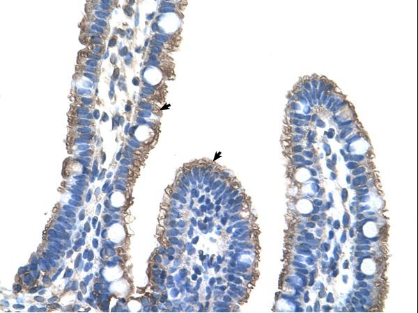 - TMEM8B / C9orf127 antibody ARP42472_T100-NP_001036054-C9ORF127 Antibody was used in IHC to stain formalin-fixed, paraffin-embedded human intestine. This image was taken for the unconjugated form of this product. Other forms have not been tested.