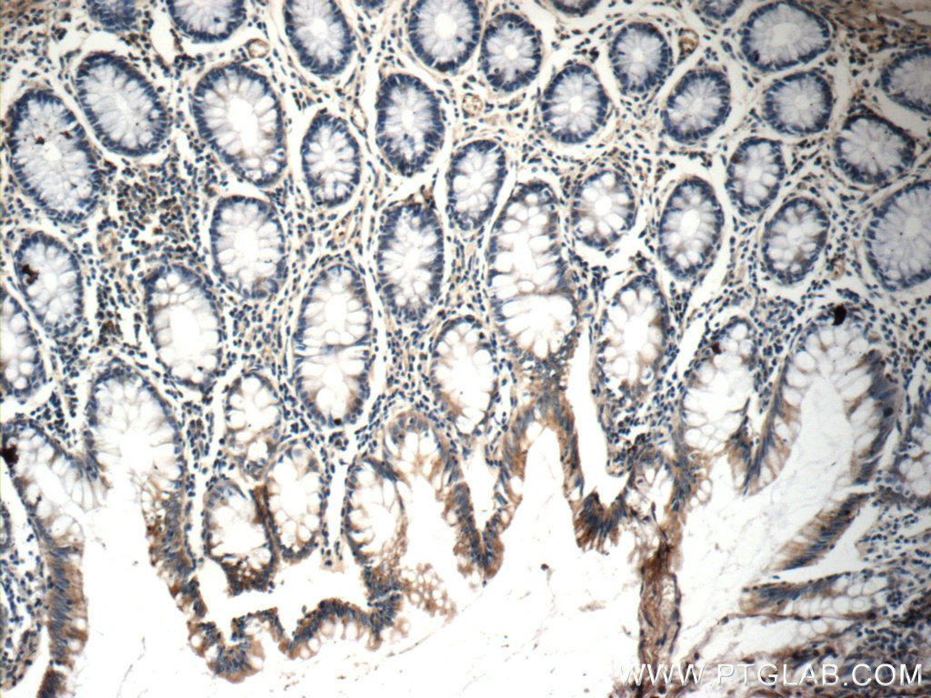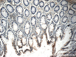 - Immunohistochemistry of paraffin-embedded human colon tissue slide using 21593-1-AP( C9orf127 Antibody) at dilution of 1:50 (under 10x lens)