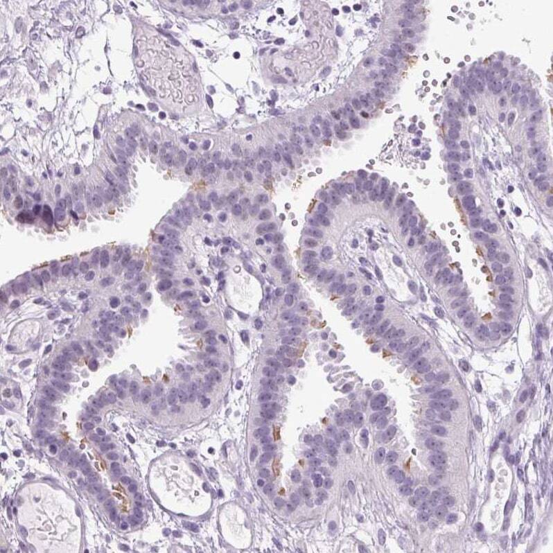 - Immunohistochemical analysis of ARMC4 in human fallopian tube using ARMC4 Polyclonal Antibody (Product # PA5-58129) shows moderate positivity in cilia of glandular cells.