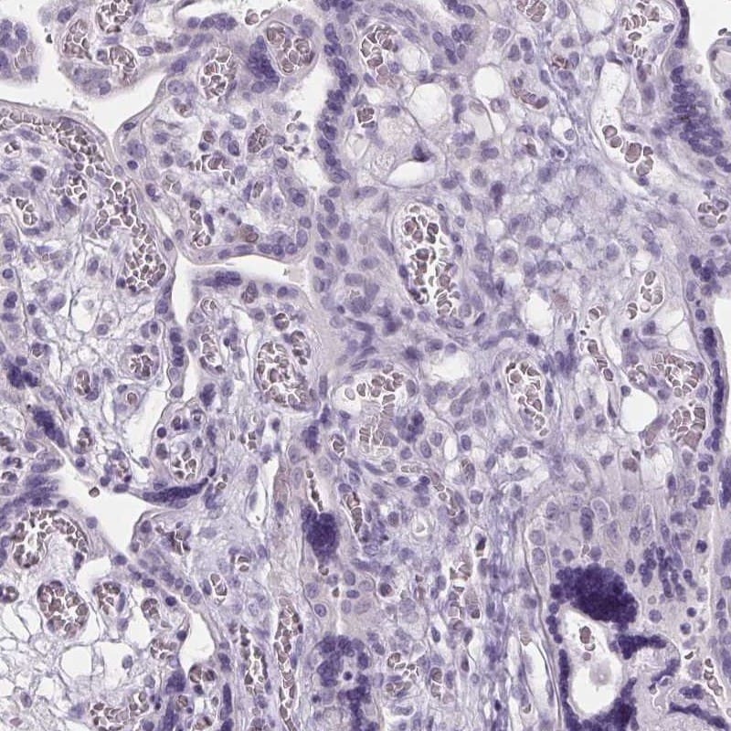 - Immunohistochemical staining of ARMC4 in human placenta using ARMC4 Polyclonal Antibody (Product # PA5-58129) shows low expression as expected.