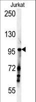 - SPAG1 Antibody western blot of Jurkat cell line lysates (35 ug/lane). The SPAG1 antibody detected the SPAG1 protein (arrow).
