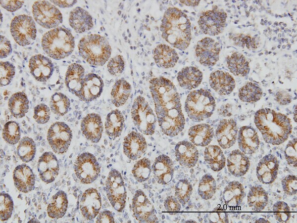 - Immunoperoxidase of monoclonal antibody to TOMM20 on formalin-fixed paraffin-embedded human small Intestine. Antibody concentration is 3 µg/mL.