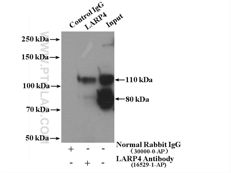 - IP result of anti-LARP4 (IP: 16529-1-AP, 4 µg; Detection: 16529-1-AP 1:300) with Y79 cells lysate 2000 µg.