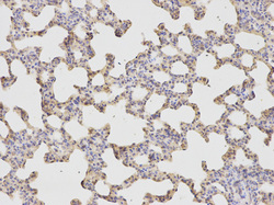 - Immunohistochemistry of paraffin-embedded rat lung using HADH antibody at dilution of 1:400 (200x lens).