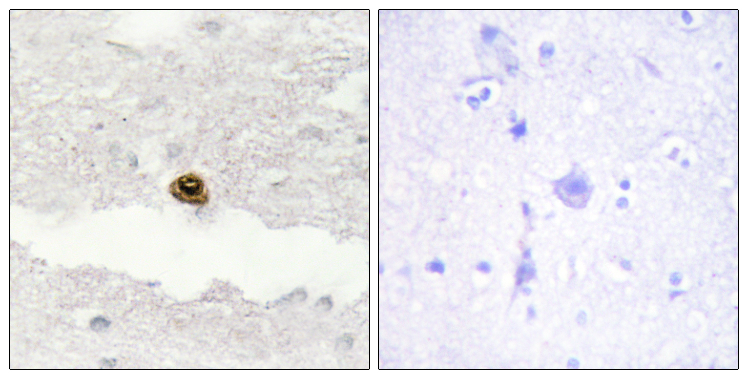 - Immunohistochemistry analysis of paraffin-embedded human brain, using DGKZ Antibody. The picture on the right is blocked with the synthesized peptide.