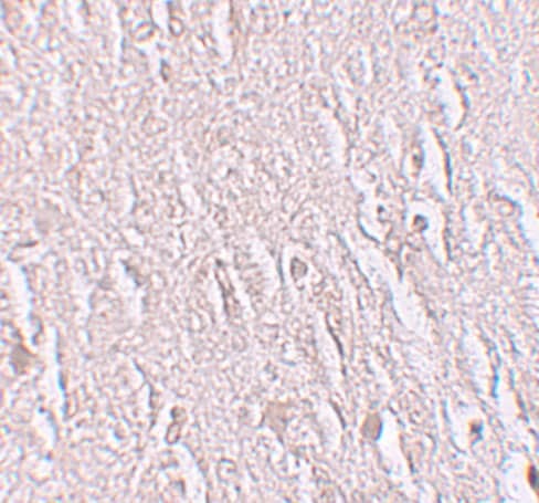 - Immunohistochemistry of ZBTB5 in human brain tissue with ZBTB5 Polyclonal Antibody (Product # PA5-21085) at 2.5 µg/mL.