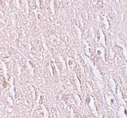 - Immunofluorescence of ZBTB5 in human brain tissue with ZBTB5 Polyclonal Antibody (Product # PA5-21085) at 20 µg/mL.