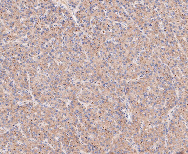 - Immunohistochemical analysis of CLSTN1 in paraffin-embedded human liver cancer tissue using a monoclonal antibody (Product #MA5-36139). The section was pre-treated using heat mediated antigen retrieval with sodium citrate buffer (pH 6.0) for 20 minutes. The tissues were blocked in 5% BSA for 30 minutes at room temperature, washed with ddH2O and PBS, and then probed with the primary antibody (1:200) for 30 minutes at room temperature. The detection was performed using an HRP conjugated compact polymer system. DAB was used as the chromogen. Tissues were counterstained with hematoxylin and mounted with DPX.